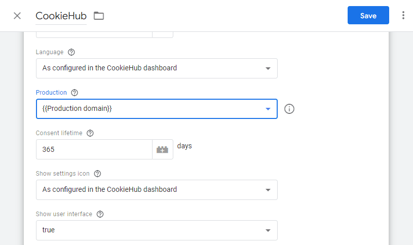 - Save the changes to the CookieHub tag.