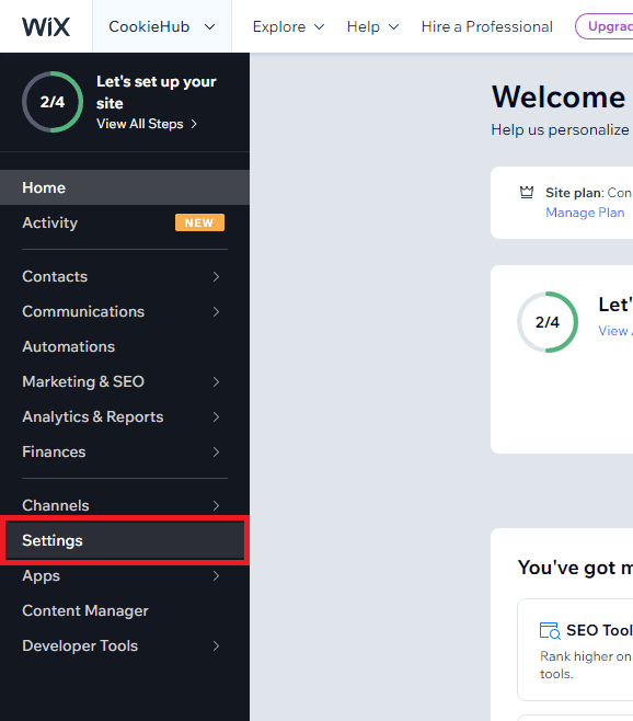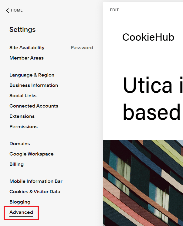 - Log in to your Weebly account and navigate to the site you want to add CookieHub to.
