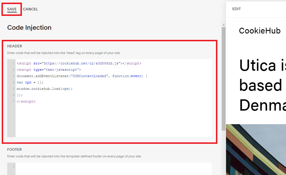 If you have a Squarespace website and want to implement CookieHub to manage your third-party tracking scripts, you can follow these steps: